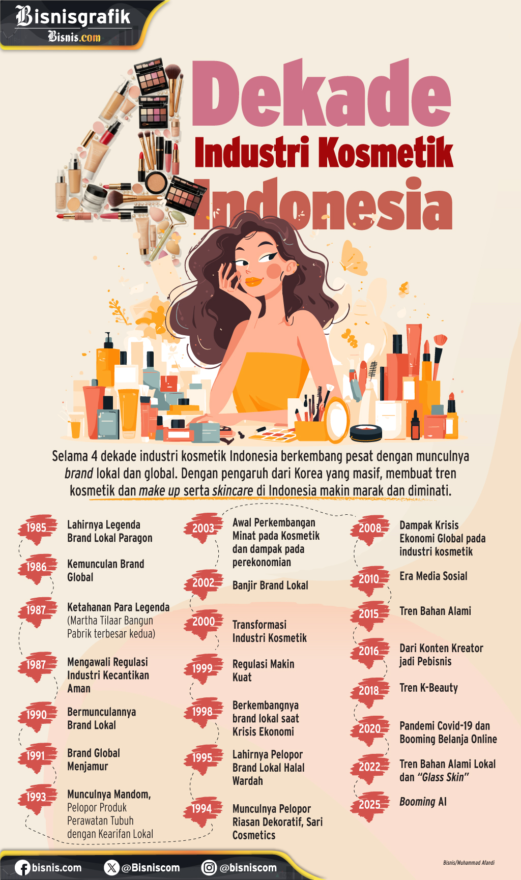 Industri kosmetik di Indonesia telah mengalami perubahan besar dalam empat dekade terakhir, dengan munculnya berbagai brand legendaris dan inovasi yang terus berkembang. Dari awalnya hanya sebatas produk lokal hingga kini menjadi bagian dari industri global, perkembangan ini menunjukkan ketahanan dan kemampuan adaptasi yang luar biasa.