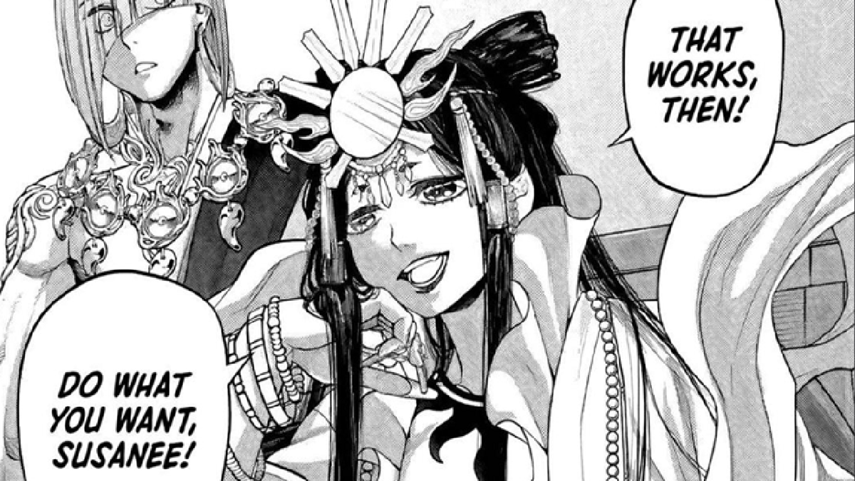 Ia ditunjuk sebagai Chief God untuk menggantikan sang ayah, Izanagi, yang juga merupakan Primordial God yang ikut berperang melawan Odin di masa lalu. Karena mengemban tugas berat, Amaterasu sangat disiplin menjaga ketertiban. Bahkan, tak segan mengasingkan Susano’o. Meski statusnya sebagai Chief God, Amaterasu tidak berpartisipasi dalam pertarungan.