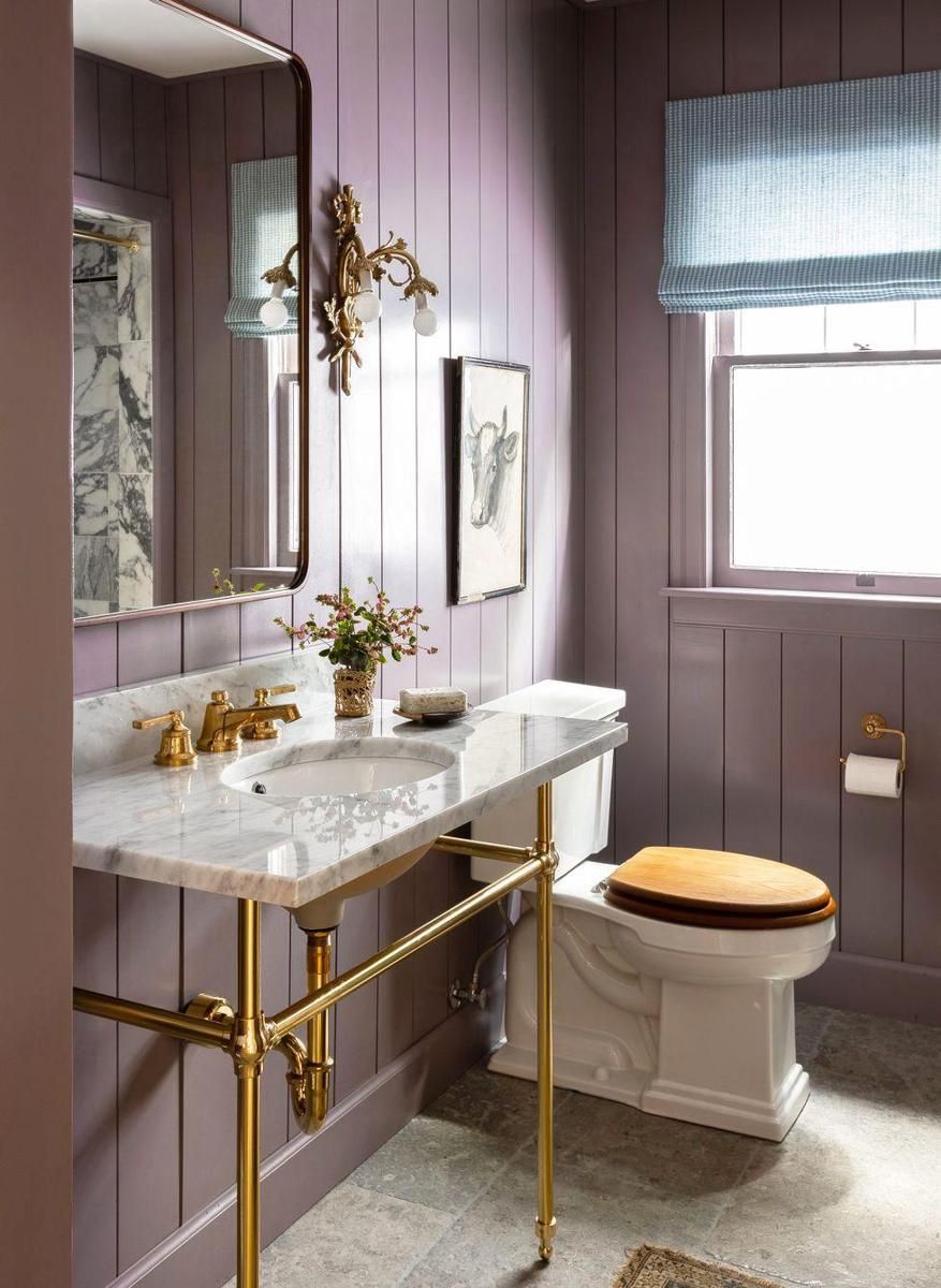 Coba padukan cat pastel pada dinding, dengan elemen emas atau chrome untuk wastafel atau mebel, agar kamar mandimu menjadi lebih elegan.