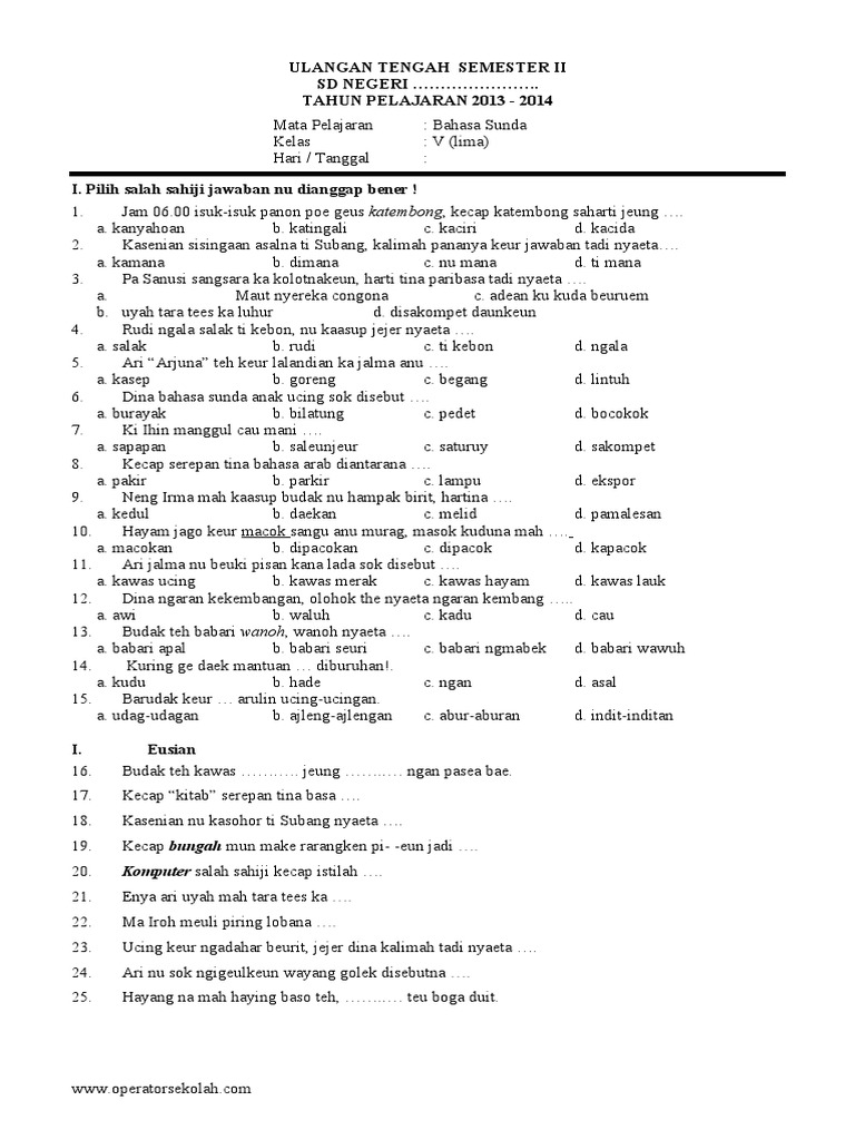 Kunci Jawaban Soal Bahasa Sunda Kelas 5 Semester 2 PTS/UAS