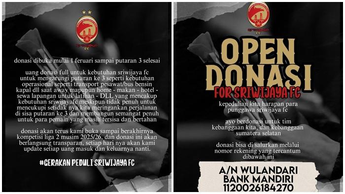 “Kami membuka donasi peduli Sriwijaya FC mulai dari tanggal 1 Februari 2026. Alhamdulillah donasi yang terkumpul dari tanggal 1-5 Februari mencapai Rp16 juta lebih. Donasi ini masih terus berjalan sampai putaran ketiga selesai baru akan kami tutup,” katanya.