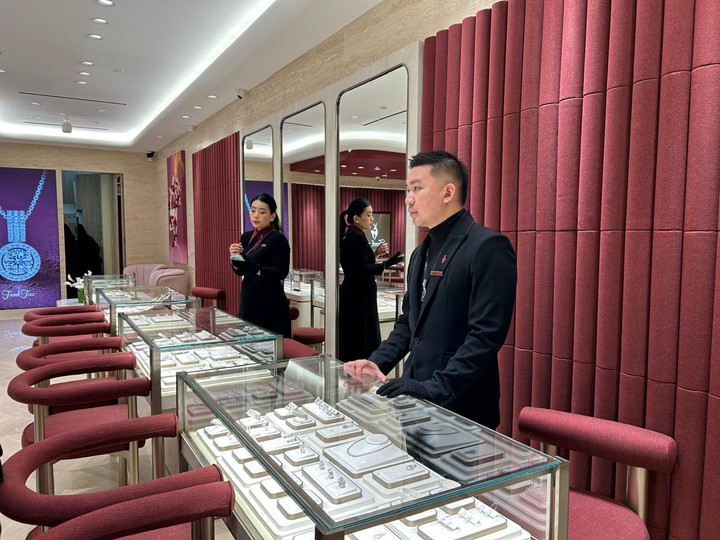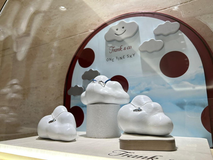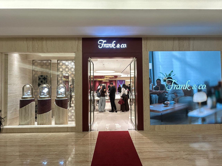 Di bagian luar gerai, pelanggan disambut oleh layar besar di sebelah kanan pintu yang menampilkan cerita keindahan cinta—baik cinta romantis, cinta platonis, maupun cinta terhadap keluarga—lewat visual video yang menghangatkan hati. Di bagian kiri, pelanggan dapat melihat sneak peek koleksi perhiasan mewah Frank & co. yang berkilau dan ciamik.