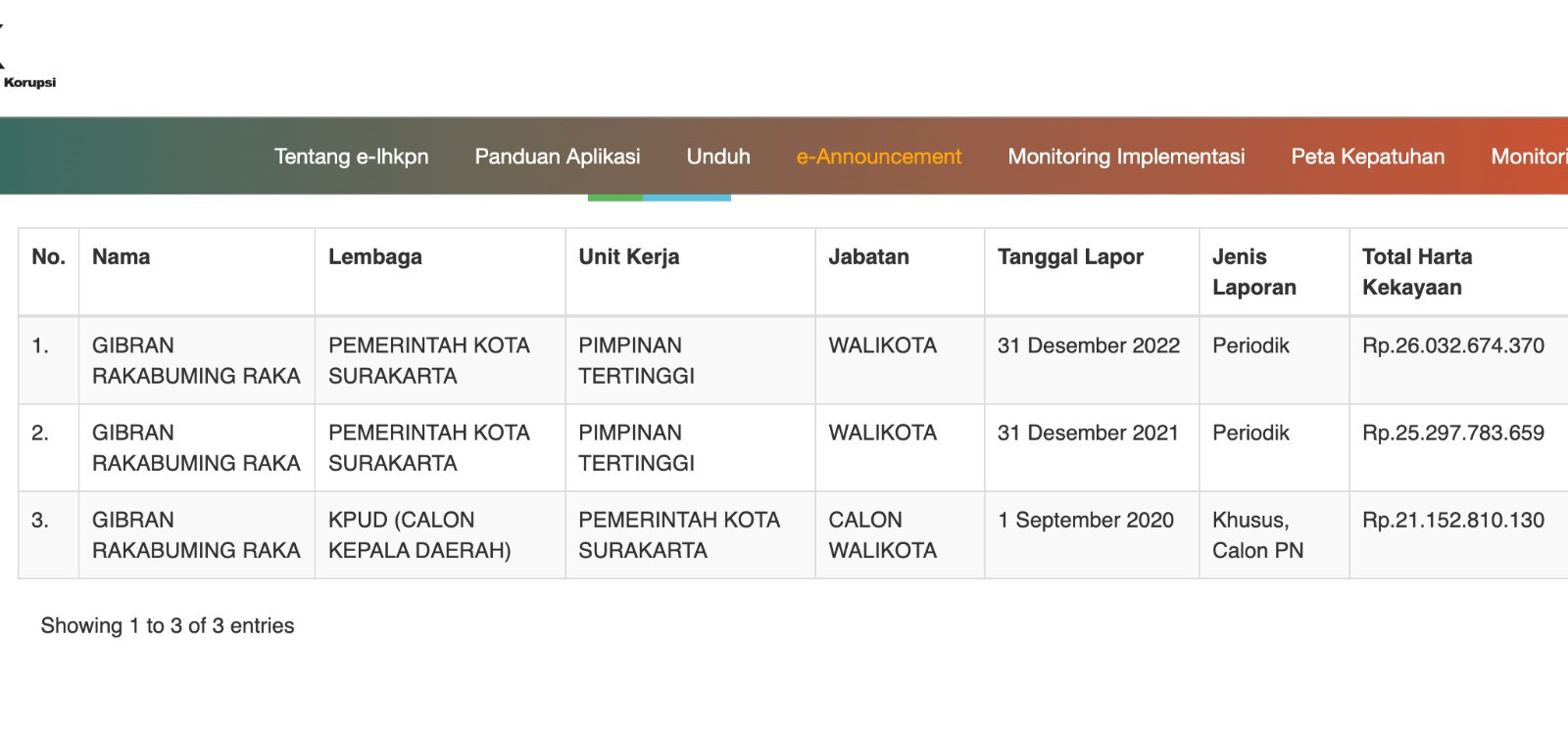Gibran Rakabuming Raka, Wakil Presiden Republik Indonesia, memiliki total harta kekayaan yang mencapai Rp27.915.654.176. Angka ini menunjukkan peningkatan dari sebelumnya, yaitu Rp26,03 miliar pada tahun 2022 saat ia menjabat sebagai Wali Kota Solo. Dalam laporan terbarunya yang diserahkan pada LHKPN KPK, Gibran tidak lagi tercatat memiliki utang.
