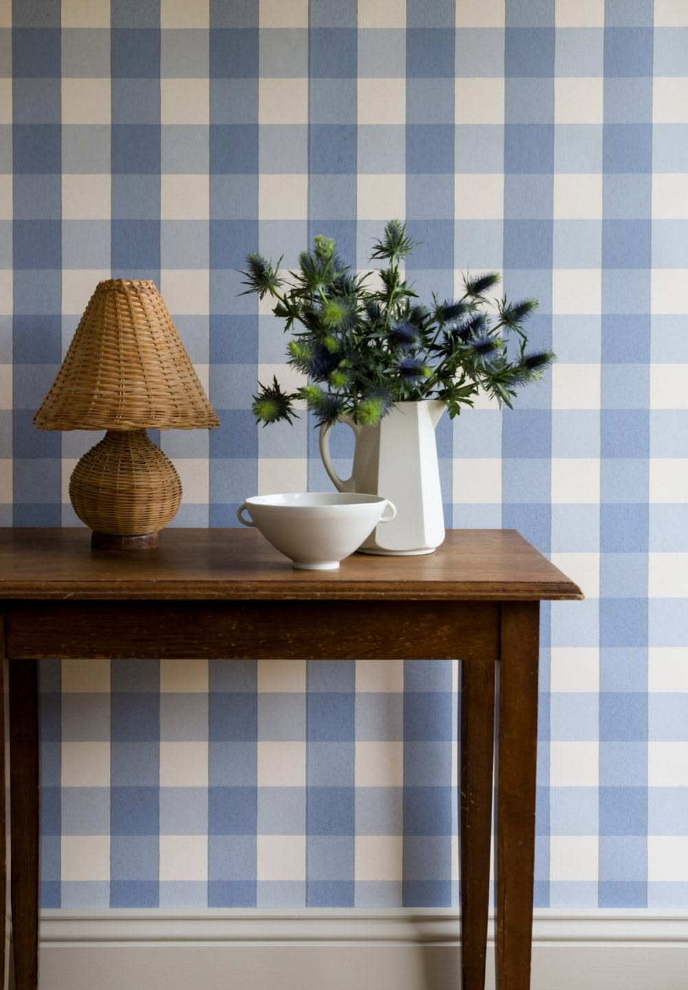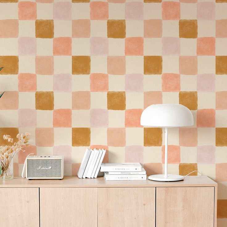Garis kotak yang bersih dengan pilihan warna lembut seperti cokelat, abu-abu, atau sage menciptakan suasana yang tenang dan rapi. Cocok untuk ruang berukuran kecil karena tetap memberi sentuhan visual tanpa membuatnya terasa penuh.