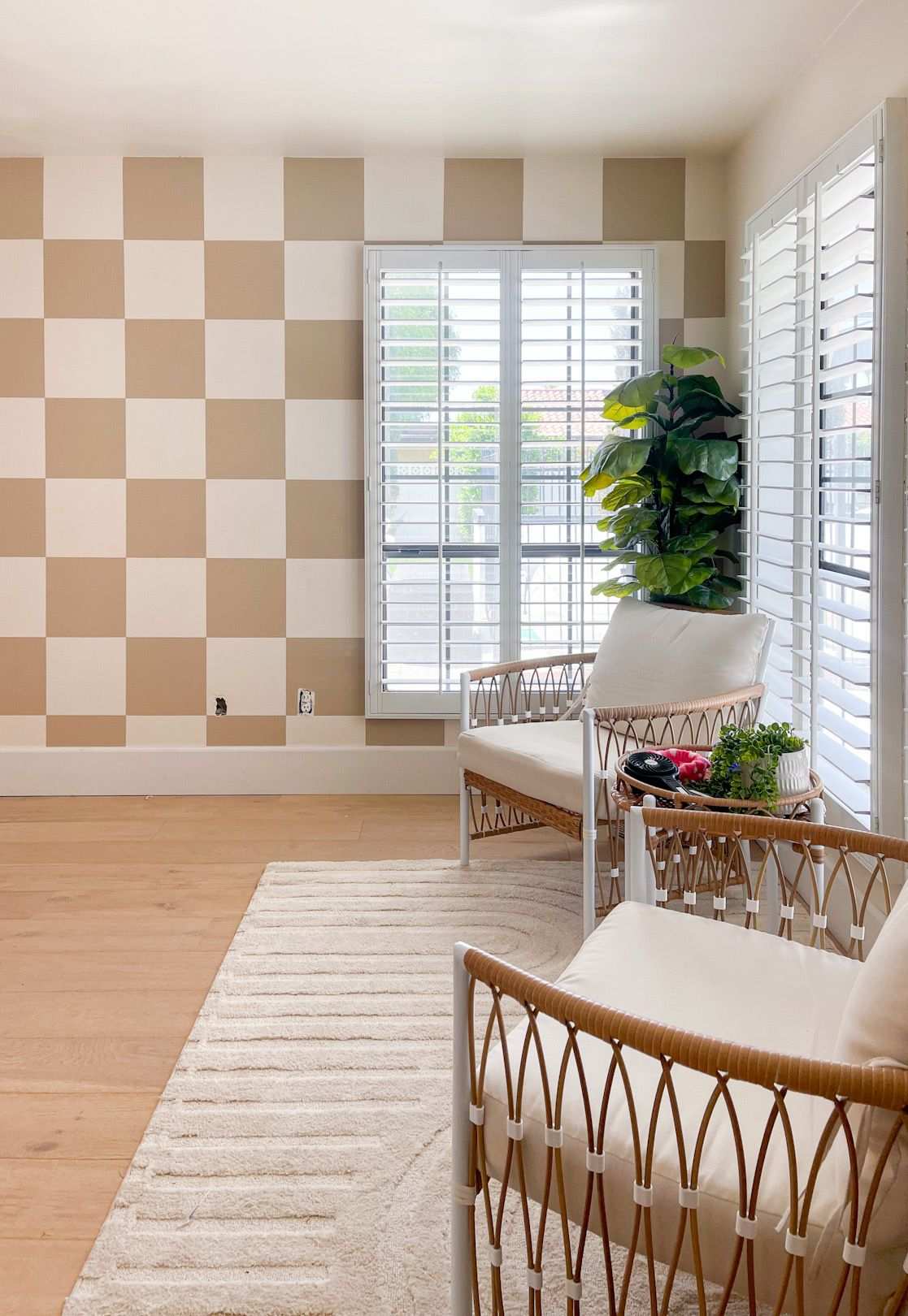 Selain itu, cat tembok motif kotak kotak juga fleksibel untuk berbagai gaya interior. Kombinasi warna yang beragam membuatnya mudah disesuaikan, bahkan bisa menciptakan ilusi ruang yang lebih luas, terang, dan tetap nyaman dipandang.