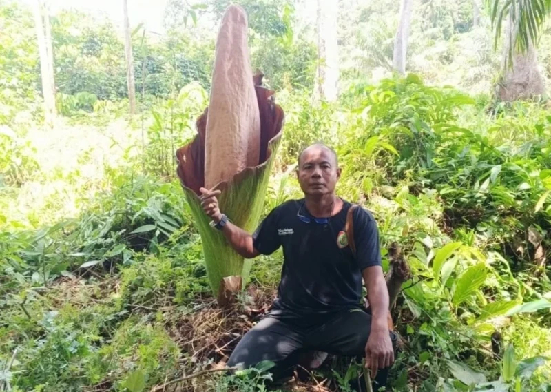 Sebatang bunga bangkai berukuran besar dilaporkan mekar dengan sempurna di kebun Abu Bakar, yang juga menjabat sebagai Ketua RT 03 di desa setempat. Fenomena alam ini menarik perhatian luas karena jenis tanaman ini sangat jarang ditemukan tumbuh di wilayah Kabupaten Lamandau.